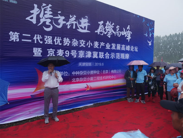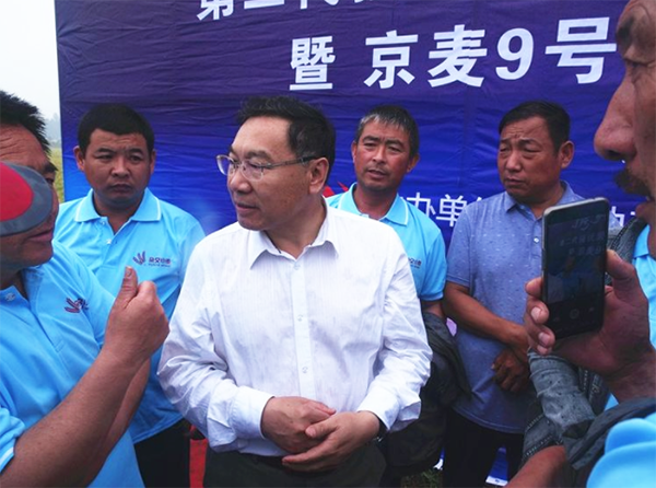 去年6月8日,強優(yōu)勢雜交小麥京麥9號品種發(fā)布會在河北廊坊隆重召開,4位院士參與了品種發(fā)布和產(chǎn)業(yè)化論壇。在會議上,中種雜交小麥公司總經(jīng)理陳兆波向全國喊出了“雜交小麥不再是傳說“的口號。一年過去,又到小麥成熟的季節(jié)。在高考的前一天,京津冀200多名種植大戶和經(jīng)銷商在天津寶坻,一同見證京麥9號交上的滿分答卷。